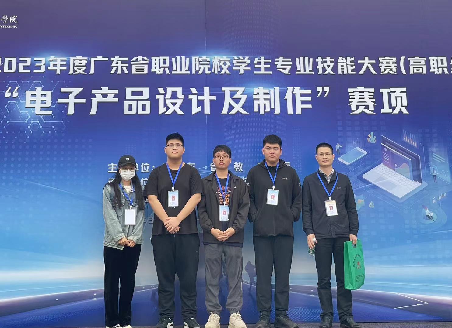 4月1日,由广东省教育厅主办的广东省职业院校学生专业技能大赛(高职组)“电子产品设计及制作”赛项在广东机电职业技术成人羞羞视频软件下载举行。此次竞赛全省共有47支代表队参加,我校电子与信息工程成人羞羞视频软件下载胡燕清、罗琪老师指导的20级电子信息工程技术专业庄凯斌、魏昊宇、黄坚生三位学生凭借扎实的专业知识、娴熟的专业技能和良好的心理素质在本次大赛中表现突出,以的优异成绩获得一等奖(全省第三名)。
